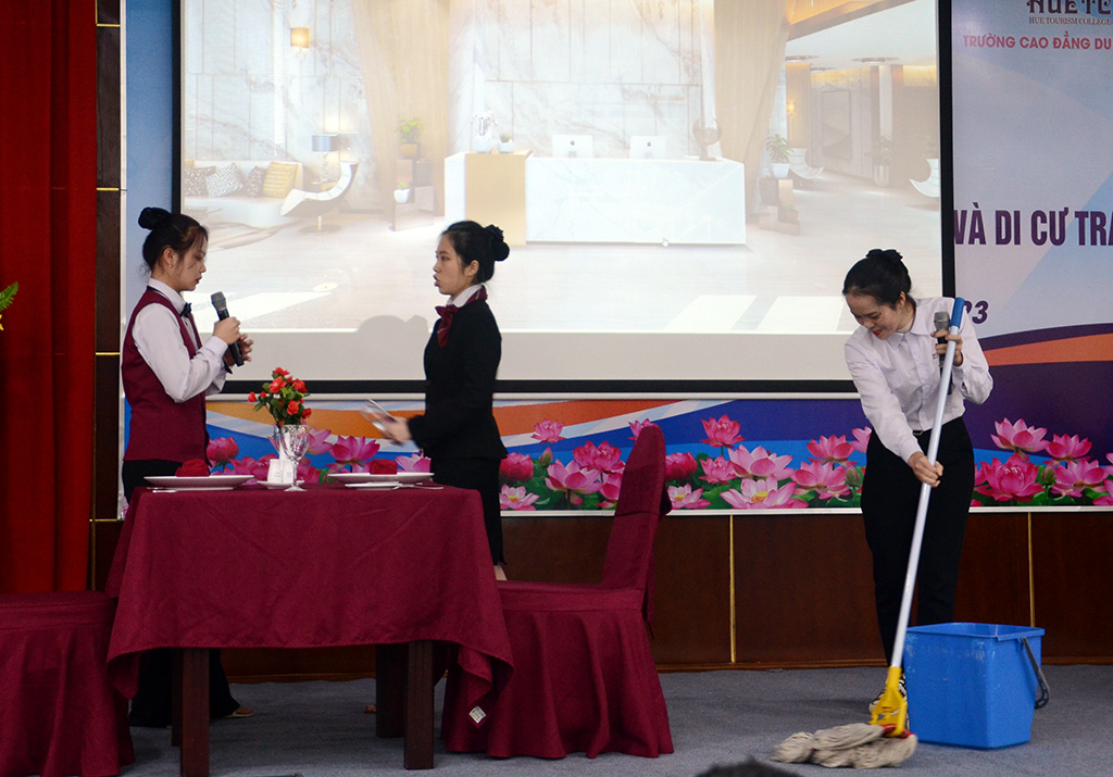 Tham gia hội thi có 4 đội, đến từ các khoa của Trường cao đẳng Du lịch Huế. Các đội trải qua 3 phần thi: chào hỏi, phần thi kiến thức và tranh luận.