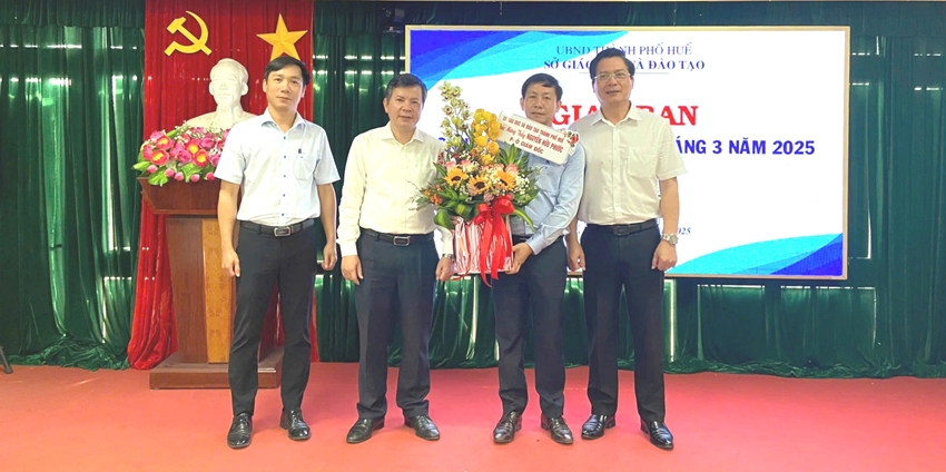 Thực hiện Nghị quyết số 12/NQ-HĐND ngày 26/2/2025 của HĐND TP. Huế về việc thành lập, tổ chức lại các cơ quan chuyên môn trực thuộc UBND thành phố, từ ngày 1/3, Sở GD&ĐT tiếp nhận từ Sở Lao động - Thương binh và Xã hội 9 cán bộ lãnh đạo và chuyên viên, gồm 1 Phó Giám đốc (theo Quyết định số 515/QĐ-UBND ngày 26/2/2025 của Chủ tịch UBND thành phố) và 8 lãnh đạo các phòng, chuyên viên phụ trách giáo dục nghề nghiệp.