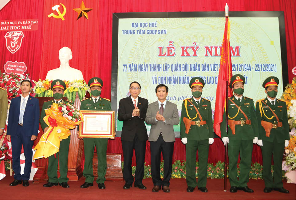Thừa ủy quyền của Chủ tịch nước, ông Nguyễn Văn Phương, Phó Bí thư Tỉnh ủy, Chủ tịch UBND tỉnh trao tặng Huân chương Lao động hạng Nhất cho Trung tâm GDQP&AN ĐH Huế