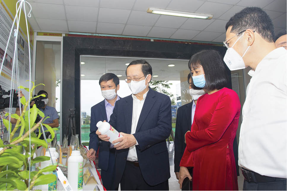 Ông Huỳnh Thành Đạt, UVTW Đảng, Bộ trưởng Bộ Khoa học và Công nghệ tham quan các sản phẩm nghiên cứu của Viện Công nghệ sinh học, ĐH Huế