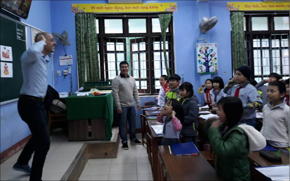 Một tiết học tiếng Anh tăng cường do giáo viên nước ngoài dạy tại trường tiểu học Vĩnh Ninh