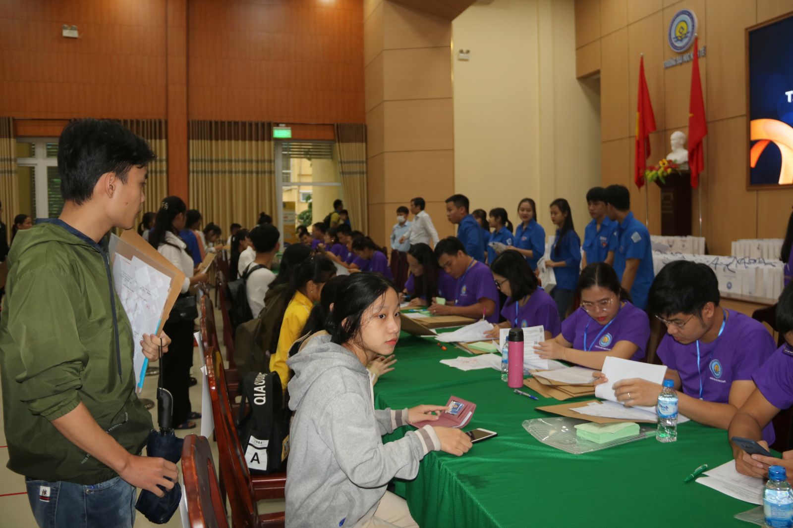 Tân sinh viên làm thủ tục nhập học trong ngày 9/10 tại Trường ĐH Kinh tế