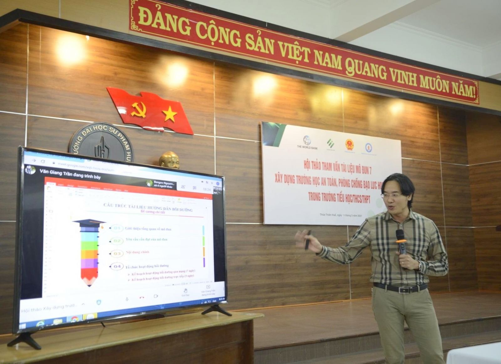 Để triển khai chương trình giáo dục phổ thông năm 2018 một cách có hiệu quả, Bộ Giáo dục và đào tạo đã ban hành quyết định liên quan gồm danh mục 54 mô đun bồi dưỡng cho giáo viên và cán bộ quản lý giáo dục. Trong khuôn khổ chương trình ETEP, Trường ĐH Sư phạm, ĐH Huế được giao nhiệm vụ biên soạn tài liệu mô đun 4 đã hoàn thành và mô đun 7 với tiêu đề “Xây dựng trường học an toàn, phòng chống bạo lực học đường trong trường tiểu học/THCS/THPT” đang chuẩn bị hoàn thiện.