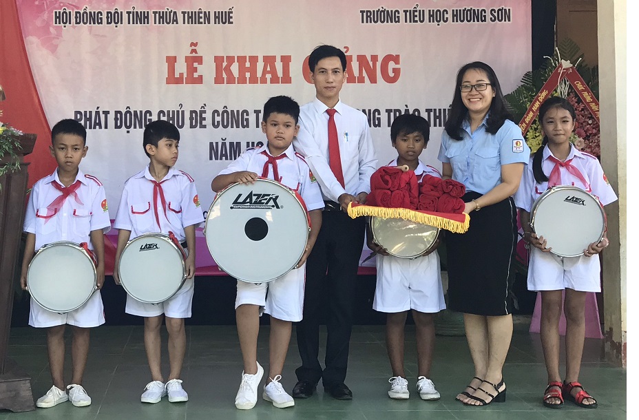 Hội đồng Đội tỉnh tặng trống cho Liên đội Trường tiểu học Hương Sơn