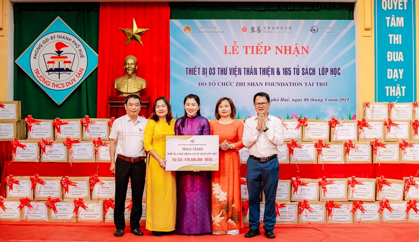 ZhiShan Foundation cũng trao 165 tủ sách lớp học cho 10 trường học trên địa bàn TP. Huế. Tổng kinh phí đợt này khoảng 611 triệu đồng, trong đó Zhi Shan hỗ trợ trên 479 triệu đồng, số còn lại do các trường đối ứng.