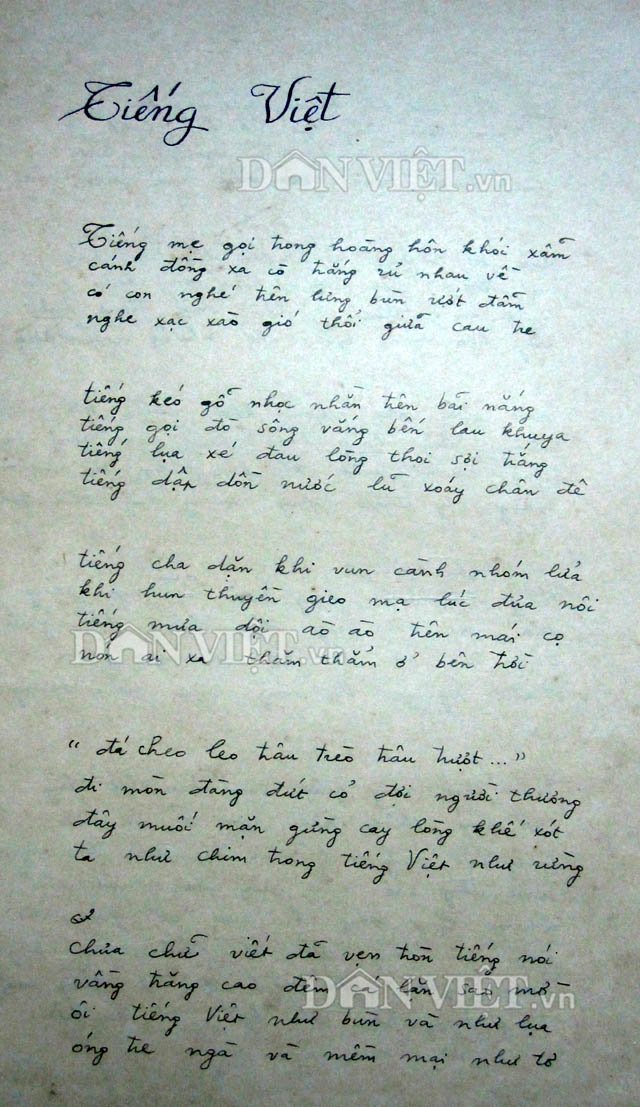 Báo điện tử Dân Việt trân trọng gửi tới bạn đọc bản thảo gốc chép tay bài thơ "Tiếng Việt" của nhà thơ Lưu Quang Vũ do PGS.TS. Lưu Khánh Thơ cung cấp: