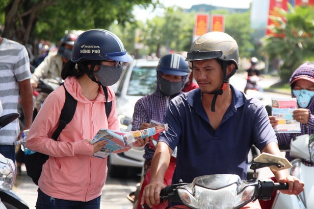 Không dừng lại đó, trước giờ thí sinh rời khỏi phòng thi khoảng 15 phút, nhiều người phát tờ rơi đã đứng xếp hàng hai bên, canh sao phát tờ rơi đến tận tay của mỗi thí sinh. Có thí sinh do vội vàng đi ra ngay cửa chính không thể từ chối, có thí sinh nhìn thấy từ xa đã né sang cổng khác, hoặc cố tình chạy thật nhanh.