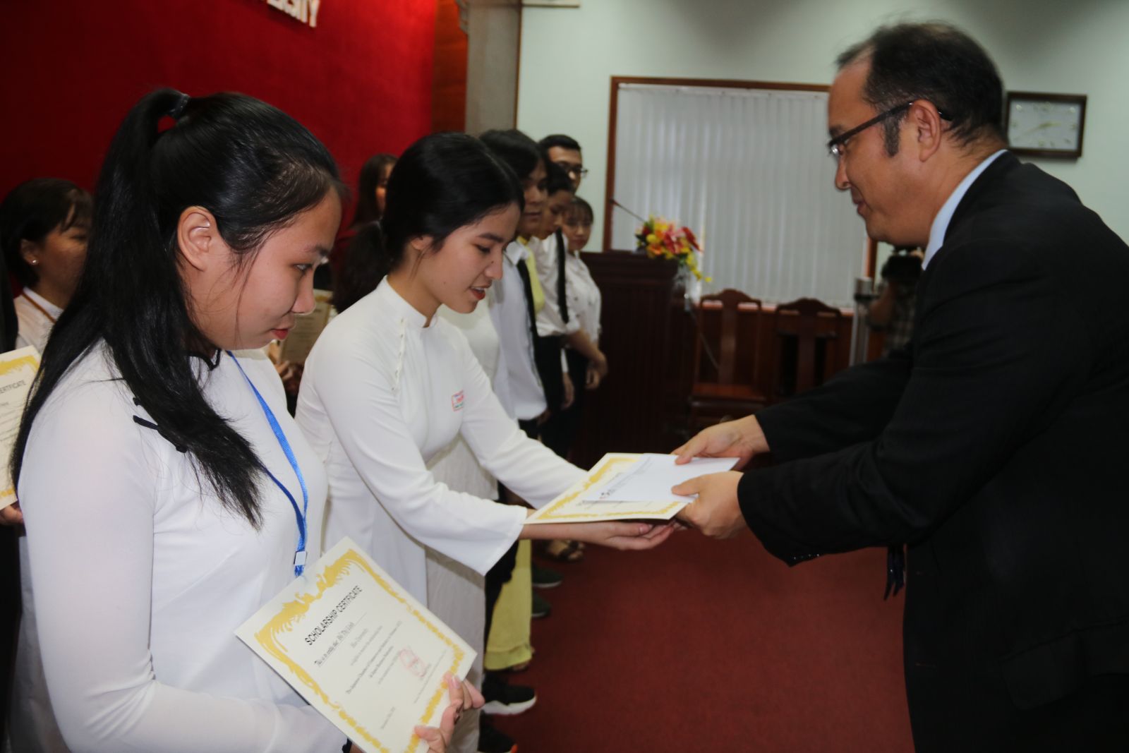 Đại diện tổ chức của Nhật Bản trao học bổng cho sinh viên