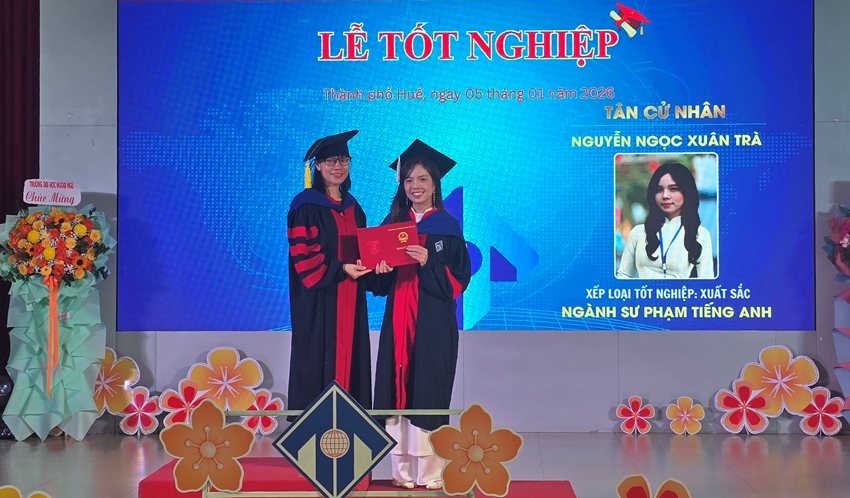 Phát biểu tại buổi lễ, lãnh đạo Trường Đại học Ngoại ngữ, Đại học Huế gửi lời chúc mừng đến các tân cử nhân, tân thạc sĩ và tân tiến sĩ. Đối với nhiều tân cử nhân, ngày hôm nay khép lại một chặng đường, đồng thời mở ra một hành trình mới, hành trình xây dựng sự nghiệp cho tương lai, hành trình sôi động, nhiều háo hức nhưng cũng nhiều thử thách.