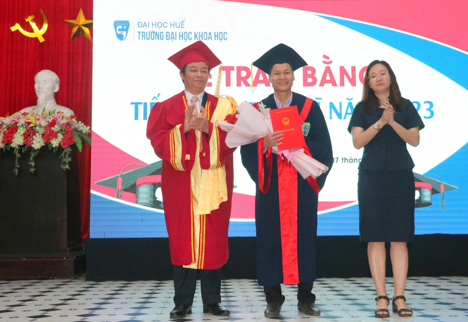 PGS.TS. Võ Thanh Tùng, Hiệu trưởng Trường đại học Khoa học trao bằng cho các tân tiến sĩ