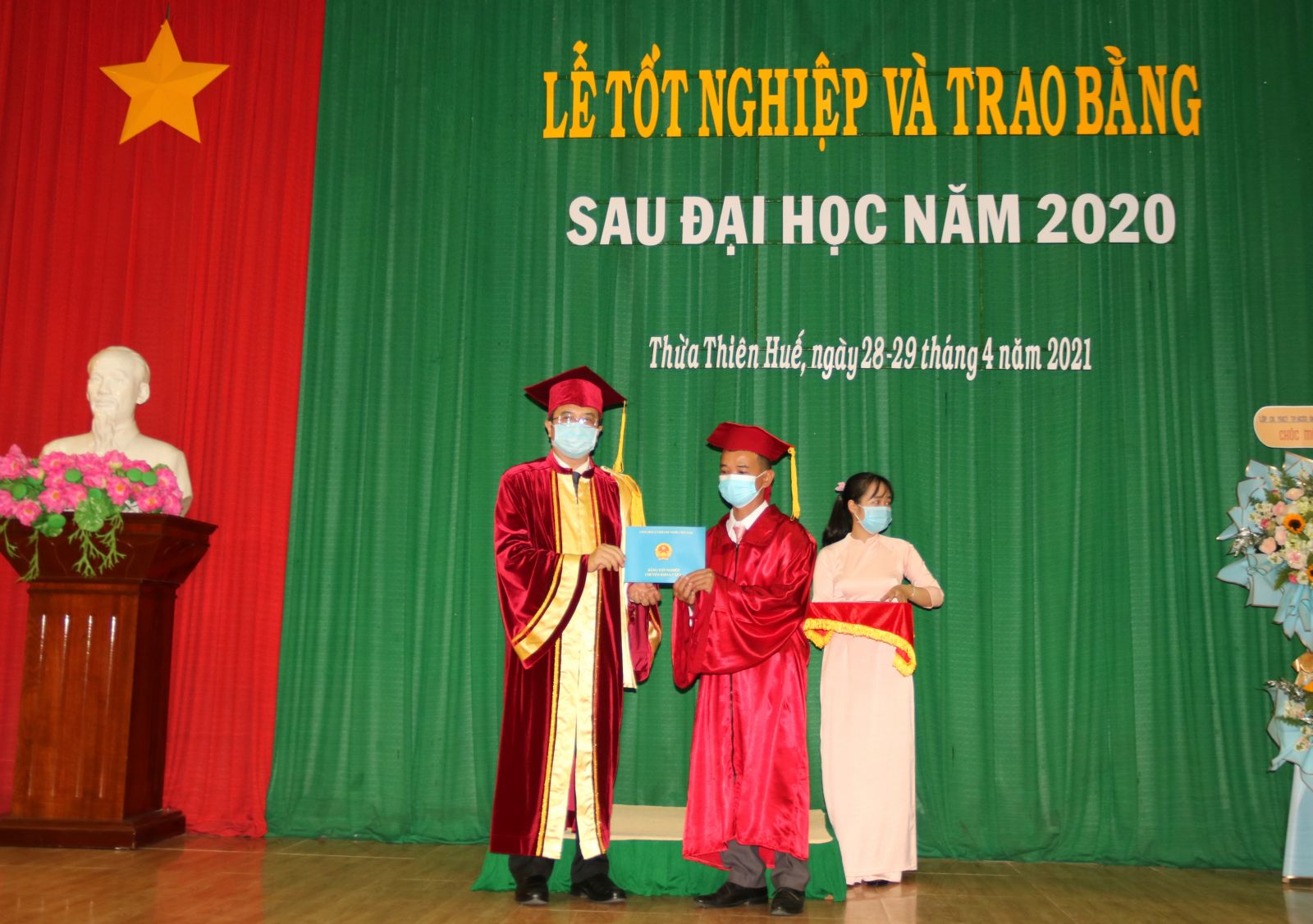 GS.TS. Nguyễn Vũ Quốc Huy, Hiệu trưởng Trường ĐH Y - Dược, ĐH Huế trao bằng cho các học viên vừa tốt nghiệp