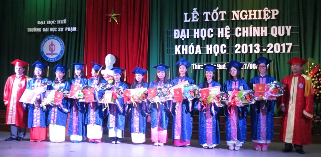 HNN.VN - Ngày 27/6, Trường đại học Sư phạm Huế tổ chức Lễ tốt nghiệp đại học hệ chính quy khoá học 2013-2017. Đợt 1 này Trường đại học Sư phạm Huế có 1.374 sinh viên được xét công nhận tốt nghiệp, trong đó có 1.269 sinh viên khóa 2013-2017, 33 sinh viên các khoá trước và 72 sinh viên chính quy ngành Giáo dục Mầm non đào tạo liên kết với Trường đại học An Giang.