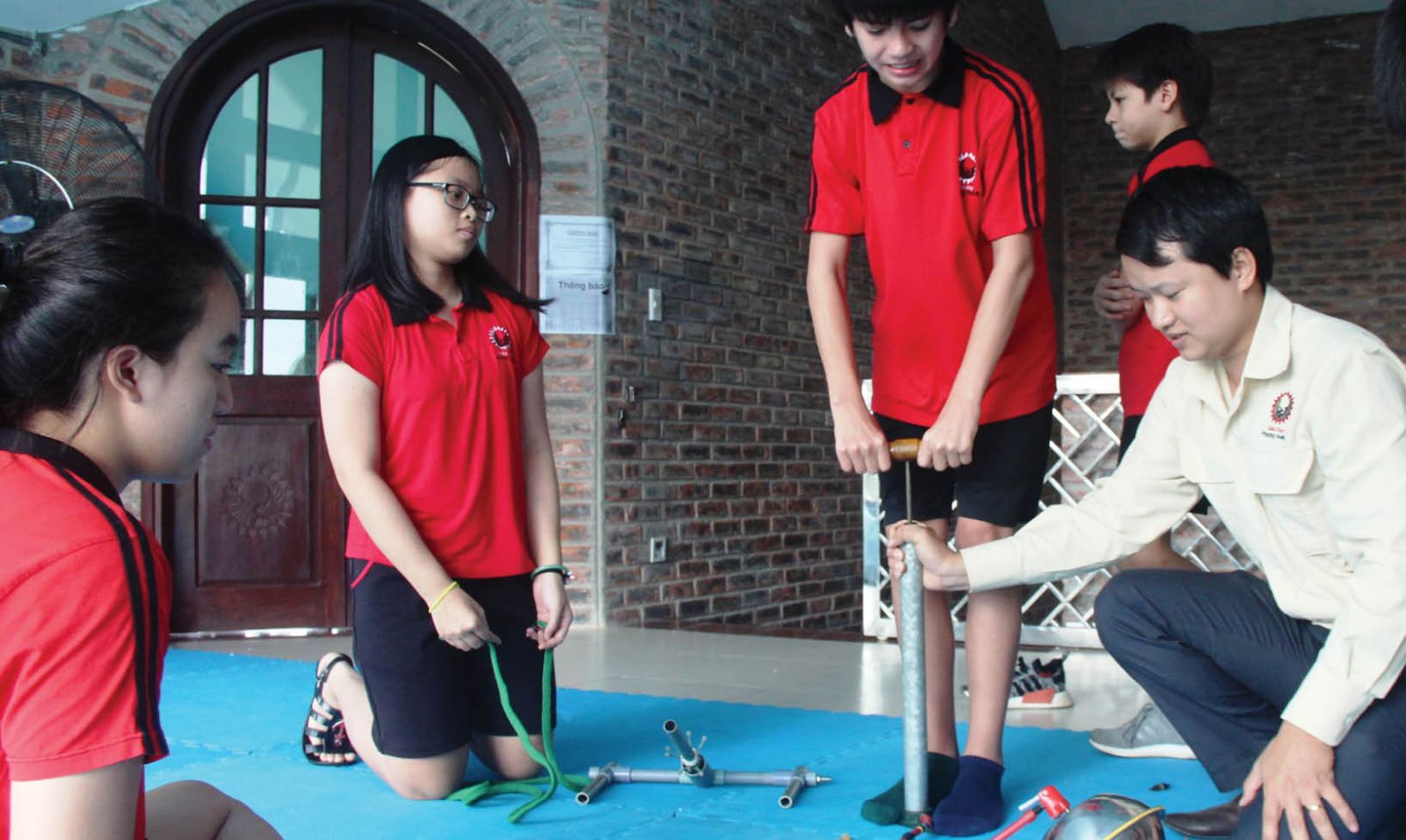 Thầy giáo Nguyễn Trường Vũ trong một lần ứng dụng sáng chế của mình giúp học sinh trong quá trình học tập