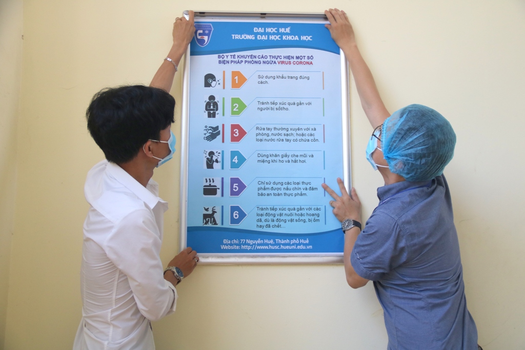 Hiện, nhiều trường ĐH như: Khoa học, Sư phạm, Phân hiệu ĐH Huế tại Quảng Trị… đã tiến hành pha chế các dung dịch rửa tay sát khuẩn để phục vụ miễn phí cho cán bộ và người học. TS. Trương Chí Hiếu, Giám đốc Phân hiệu ĐH Huế tại Quảng Trị cho biết, trong đợt 1, cán bộ của phân hiệu phối hợp các đơn vị đã pha chế khoảng 400 chai dung dịch sát khuẩn (loại 100ml) để phục vụ cho cán bộ, sinh viên. Do nhu cầu cao nên phân hiệu còn mở rộng đối tượng, phát cho một số người dân ở Quảng Trị.