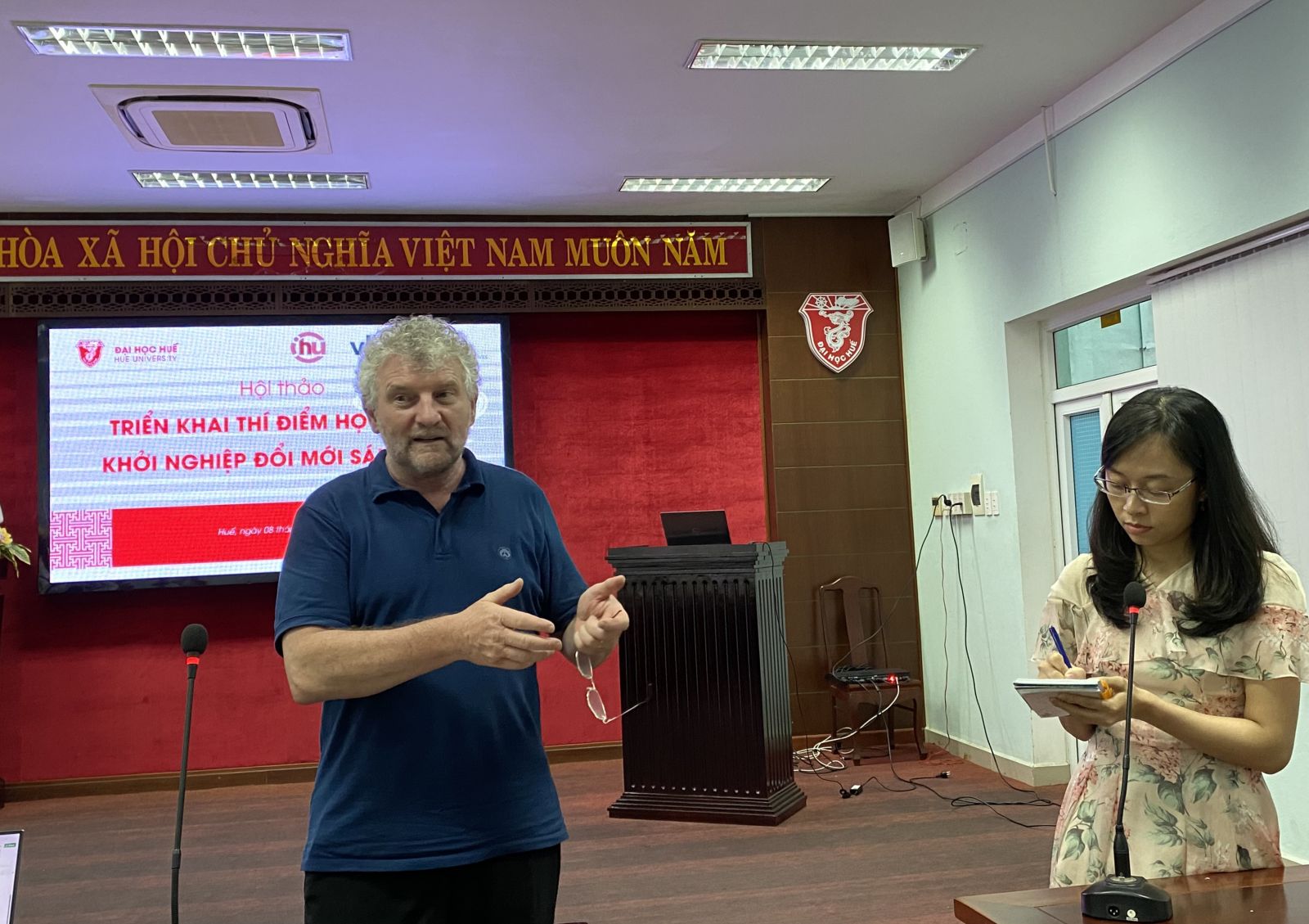 Hội thảo “Triển khai thí điểm học phần khởi nghiệp đổi mới sáng tạo" nằm trong khuôn khổ dự án hợp phần “Tăng cường thể chế ĐH” thuộc Chương trình VLIR-IUC do Vương quốc Bỉ tài trợ. Dự án bao gồm chuỗi các hội thảo, tập huấn chuyên đề về đổi mới sáng tạo trong giáo dục ĐH, chia sẻ kinh nghiệm thương mại hóa sản phẩm khoa học và công nghệ, ĐH Huế kết nối với doanh nghiệp... được diễn ra từ ngày 6 – 10/6/2022.