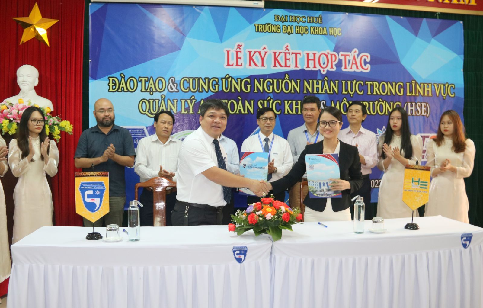 HNN.VN - Chiều 21/5, Trường đại học (ĐH) Khoa học, ĐH Huế phối hợp với các doanh nghiệp tổ chức lễ ký kết hợp tác đào tạo và cung ứng nguồn nhân lực trong lĩnh vực quản lý an toàn sức khỏe và môi trường (HSE).