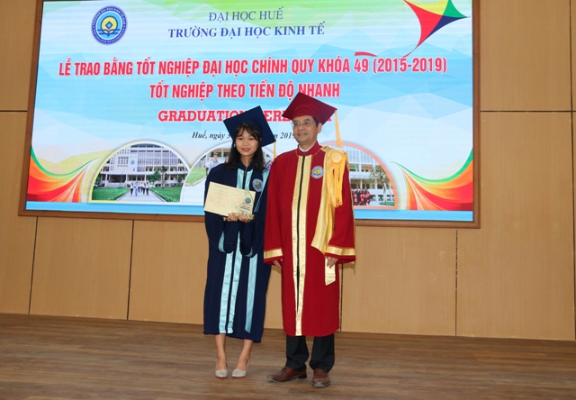 HNN.VN - Chiều 30/3, Trường đại học (ĐH) Kinh tế, ĐH Huế tổ chức lễ trao bằng tốt nghiệp ĐH chính quy khóa 49 (khóa học 2015 – 2019) tốt nghiệp theo tiến độ nhanh và các khóa khác.