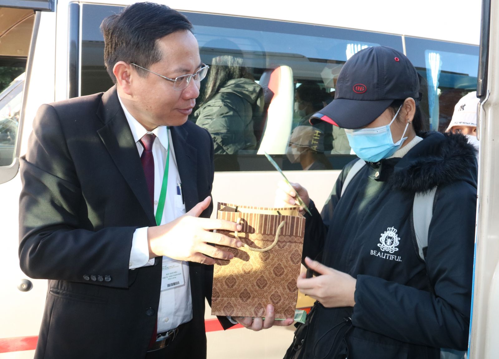 PGS.TS. Trần Thanh Đức, Hiệu trưởng nhà trường lì xì và tặng quà tết cho sinh viên trước lúc về quê đón tết