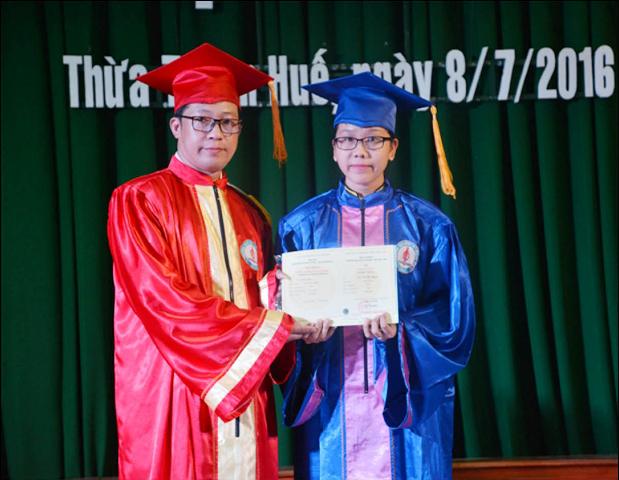 TS.Lê Anh Phương, Hiệu trưởng Trường đại học Sư phạm Huế trao bằng tốt nghiệp cho sinh viên