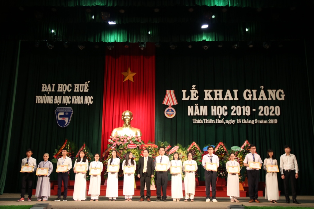 Tại lễ khai giảng, nhà trường trao thưởng cho thủ khoa trường và thủ khoa các ngành trong đợt tuyển sinh và xét tuyển ĐH năm 2019;đồng thời, khen thưởng các sinh viên đạt kết quả học tập xuất sắc năm học 2018 – 2019.