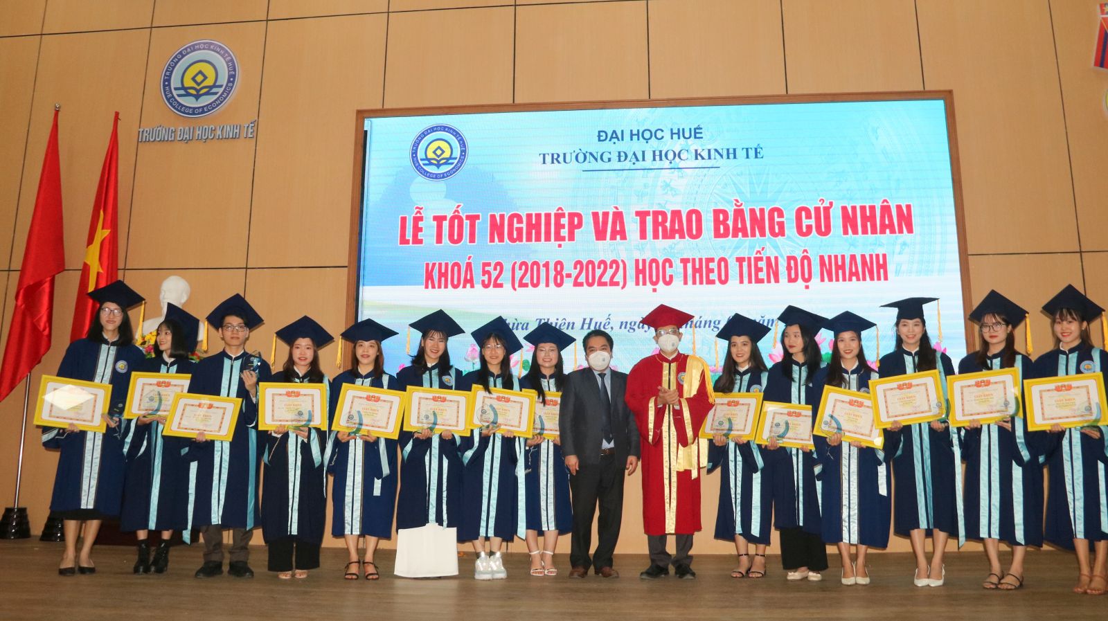 *Cùng ngày, Trường ĐH Kinh tế, ĐH Huế tổ chức lễ trao bằng cử nhân hệ chính quy khóa học 2018 – 2022 (khóa 52) theo tiến độ nhanh và các khóa khác.