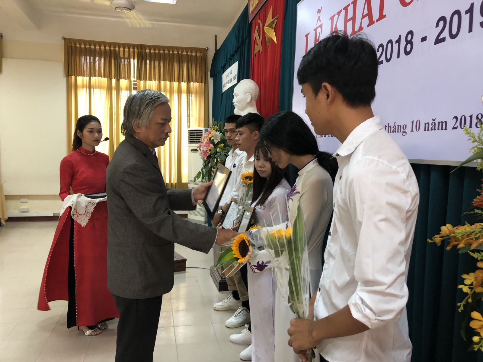 Dịp này, nhà trường khen thưởng cho 54 sinh viên học lực giỏi, rèn luyện tốt và 34 sinh viên hoạt động phong trào đoàn tốt trong năm học 2017 - 2018.