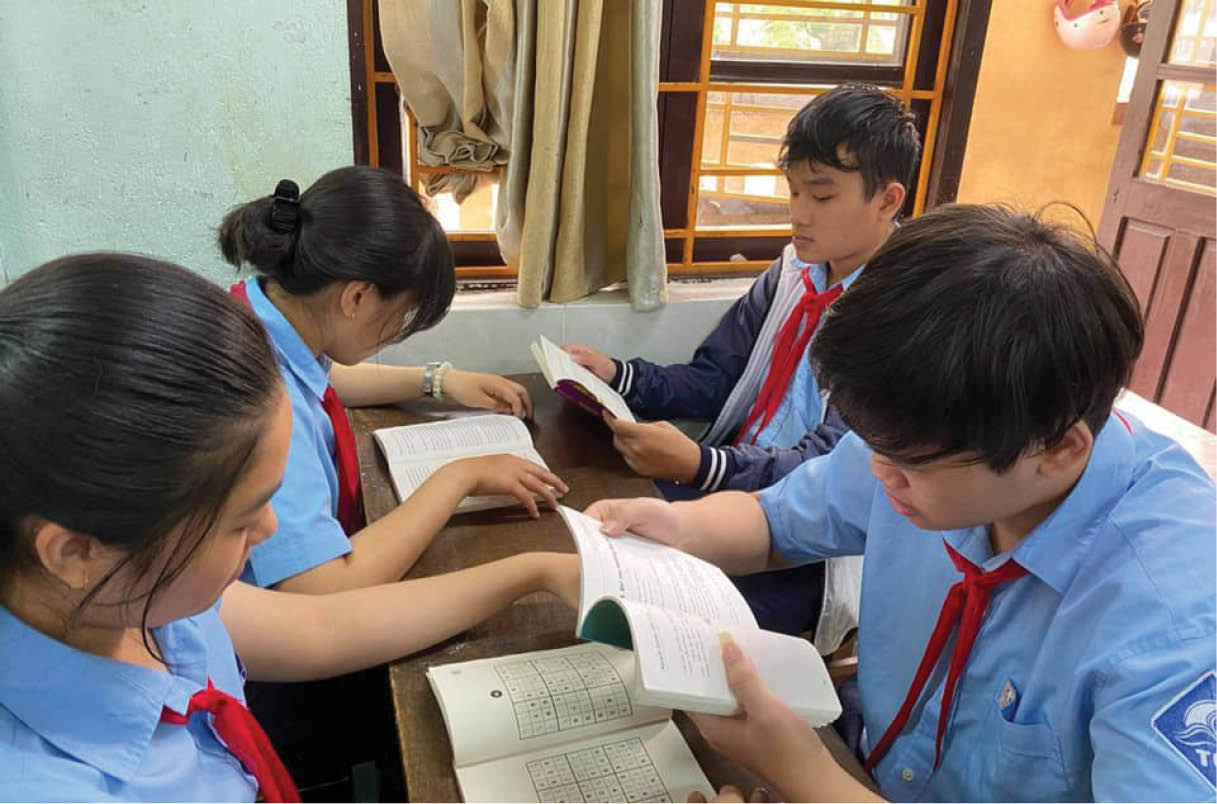 Học sinh Trường THCS Trần Cao Vân đọc sách trong giờ ra chơi