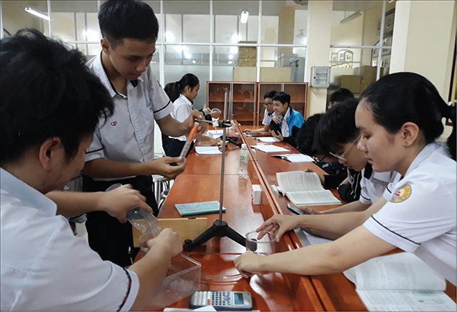 Học sinh Trường THPT chuyên Quốc Học Huế làm thí nghiệm môn vật lý