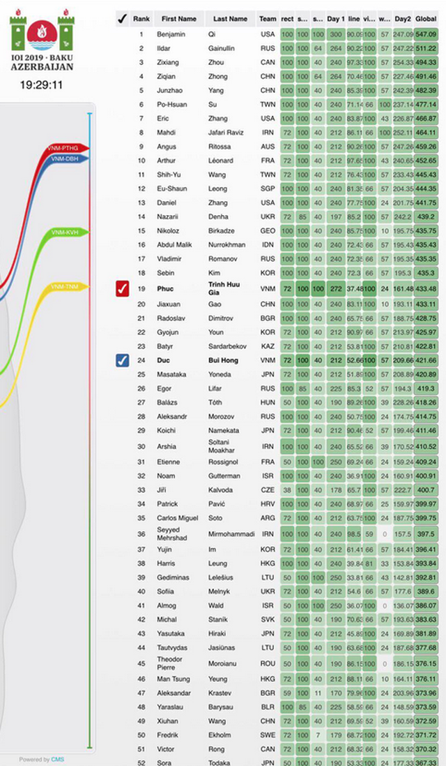 Thông tin từ cuộc thi Olympic Tin học quốc tế 2019 tại Azerbaijan, đoàn Việt Nam có bốn học sinh Việt Nam dự thi đều đoạt giải, gồm hai huy chương Vàng, một huy chương Bạc, một huy chương Đồng.