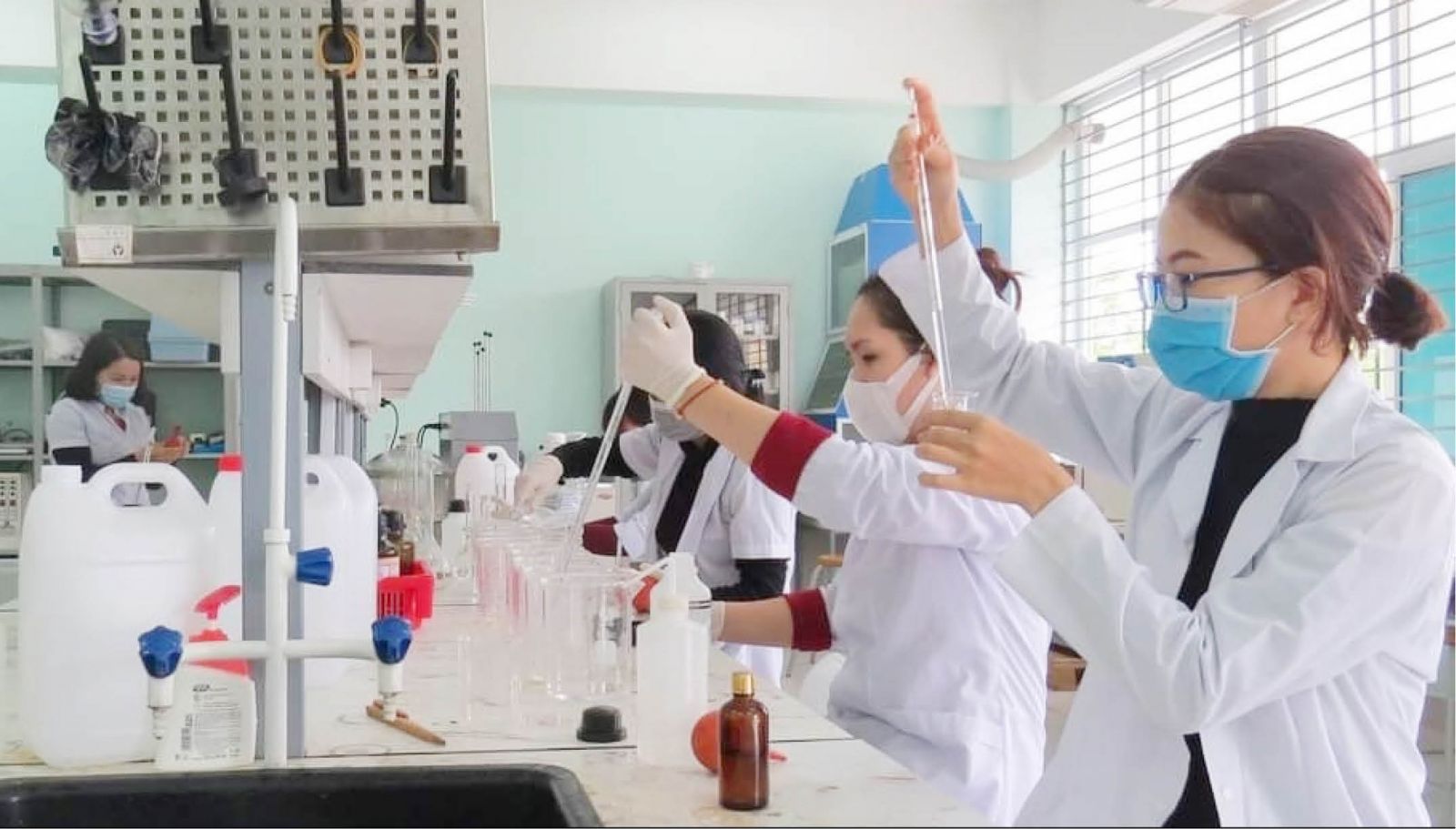 Người học làm nghiên cứu trong phòng thí nghiệm Phân hiệu đại học Huế tại Quảng Trị