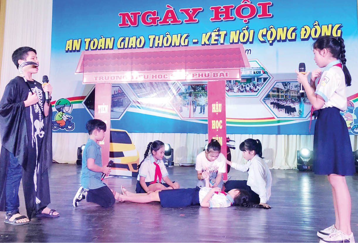 Một tiết mục của học sinh Trường tiểu học số 2 Phú Bài tại ngày hội “An toàn giao thông - Kết nối cộng đồng”