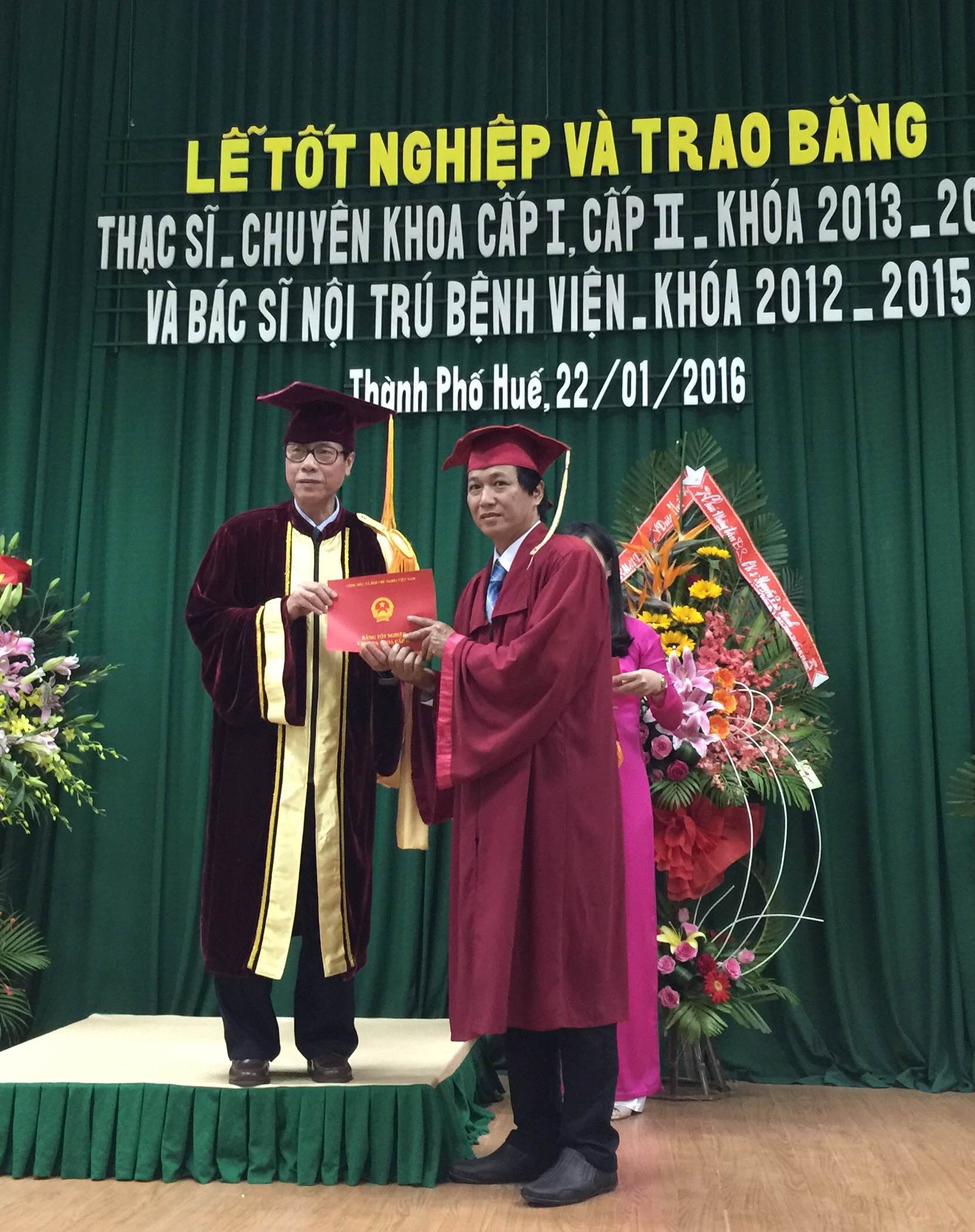 HNN.VN - Ngày 22/1, Trường đại học Y Dược Huế tổ chức Lễ tốt nghiệp và trao bằng thạc sĩ, Chuyên khoa cấp I, Chuyên khoa cấp II (khóa 2013-2015) và Bác sĩ nội trú bệnh viện (khóa 2012-2015) cho 274 học viên.