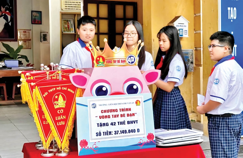 Thông qua phong trào “Vòng tay bè bạn”, ngoài việc trao tặng thẻ BHYT cho học sinh khó khăn trong trường, đầu năm học 2024 - 2025, Trường THCS Chu Văn An còn trao tặng 52 thẻ BHYT cho học sinh có hoàn cảnh khó khăn tại Trường THCS Nguyễn Thị Minh Khai (quận Thuận Hóa) và Trường THCS Tôn Thất Bách (quận Phú Xuân).