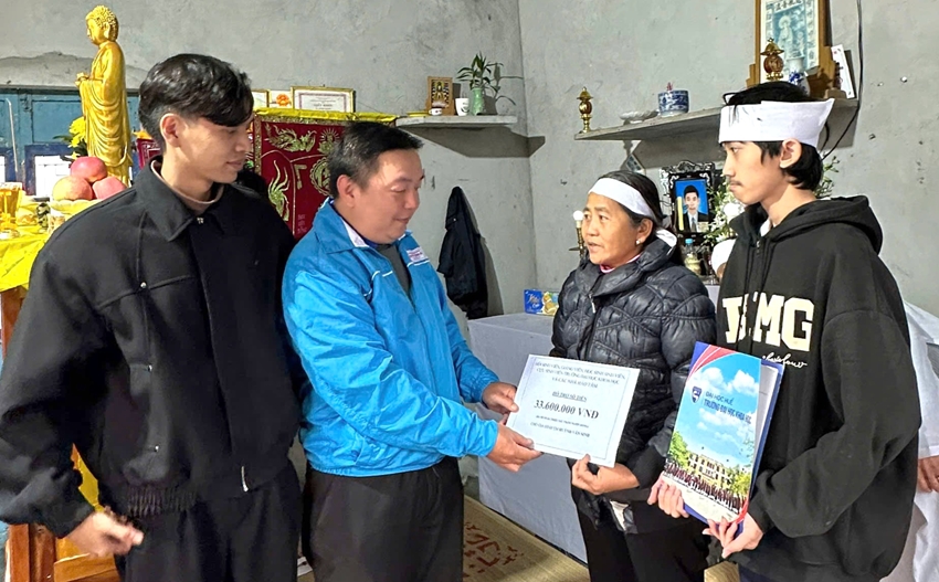 | Trao tiền hỗ trợ cho sinh viên Huỳnh Văn Sinh |