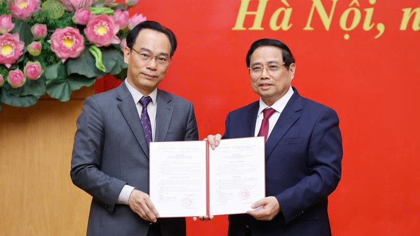 | Thủ tướng Chính phủ Phạm Minh Chính trao Quyết định điều động, giao quyền Bộ trưởng Bộ Giáo dục và Đào tạo đối với ông Hoàng Minh Sơn (Ảnh: NHẬT BẮC) |