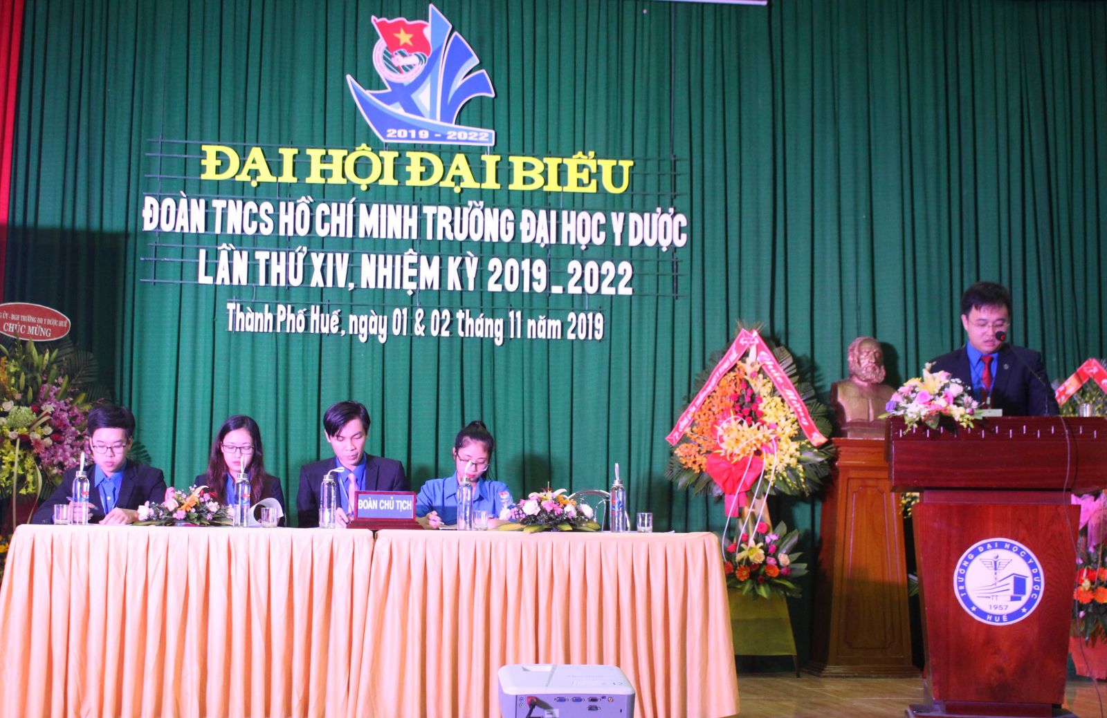Đại hội Đại biểu Đoàn TNCS Hồ Chí Minh Trường ĐH Y Dược, ĐH Huế diễn ra hai phiên, phiên thứ nhất diễn ra ngày 1/11 và phiên thứ hai trong ngày 2/11 với các nội dung chính: báo cáo tổng kết công tác Đoàn và phong trào thanh niên khóa XIII, đề ra phương hướng nhiệm vụ công tác Đoàn và phong trào thanh niên khóa XIV; tham luận và thảo luận; khen thưởng các tập thể và cá nhân xuất sắc trong nhiệm kỳ.