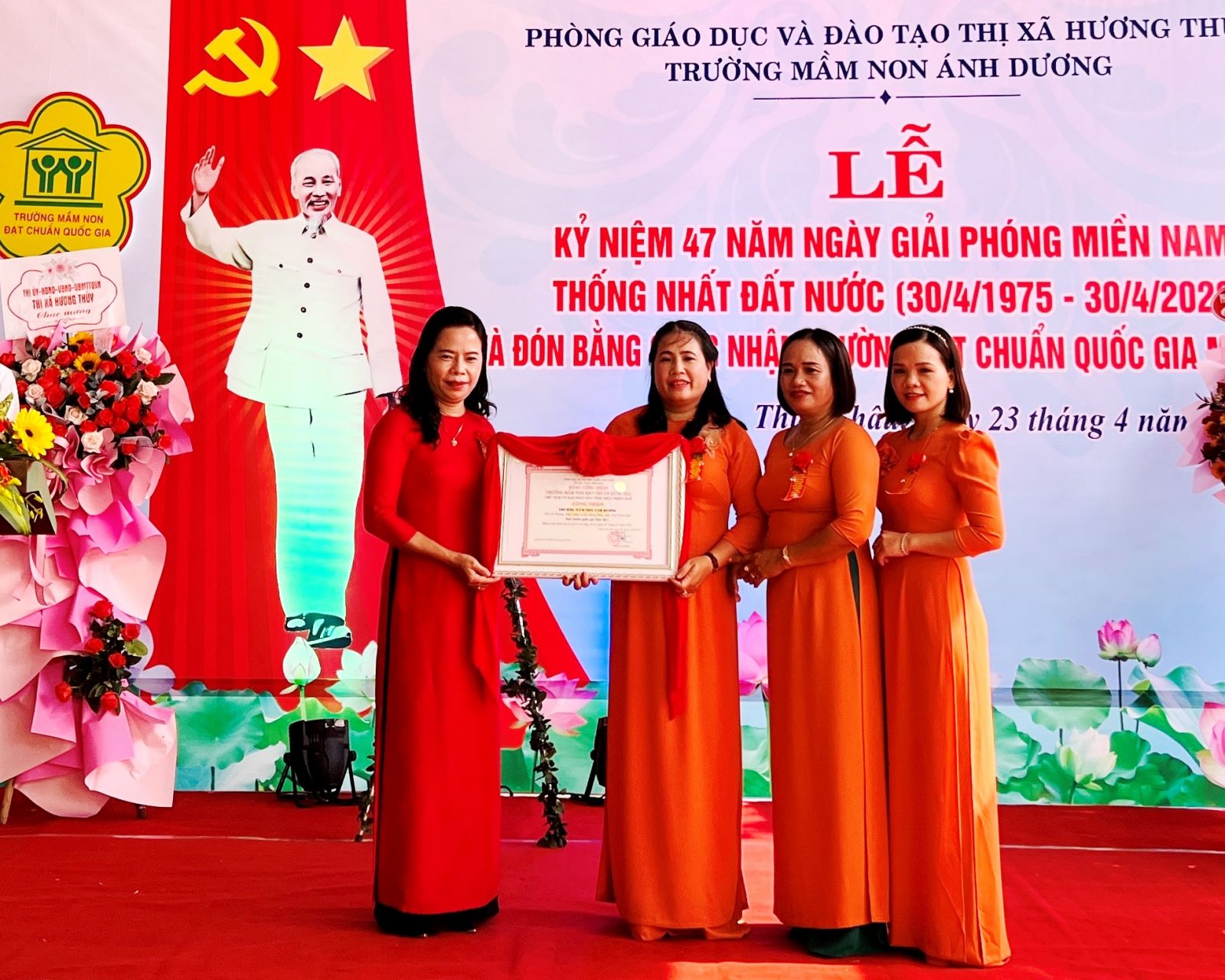 HNN.VN - Sáng 23/4, Trường mầm non Ánh Dương (P. Thủy Châu – TX. Hương Thủy) tổ chức đón bằng công nhận đạt chuẩn Quốc gia mức độ 1.