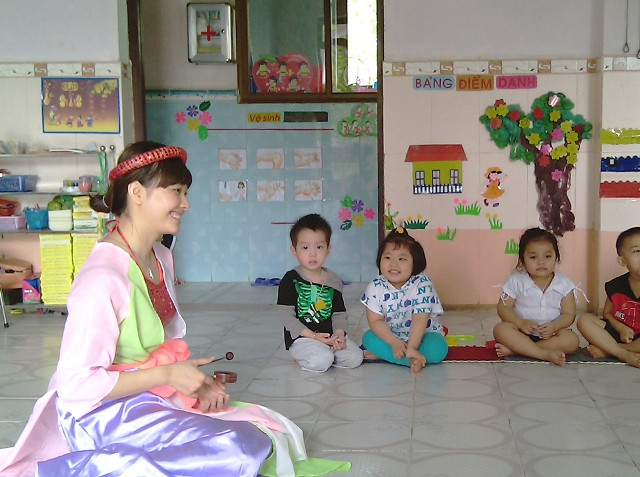 Cô giáo Diễm Thi và các cháu trong giờ hoạt động ngoại khóa