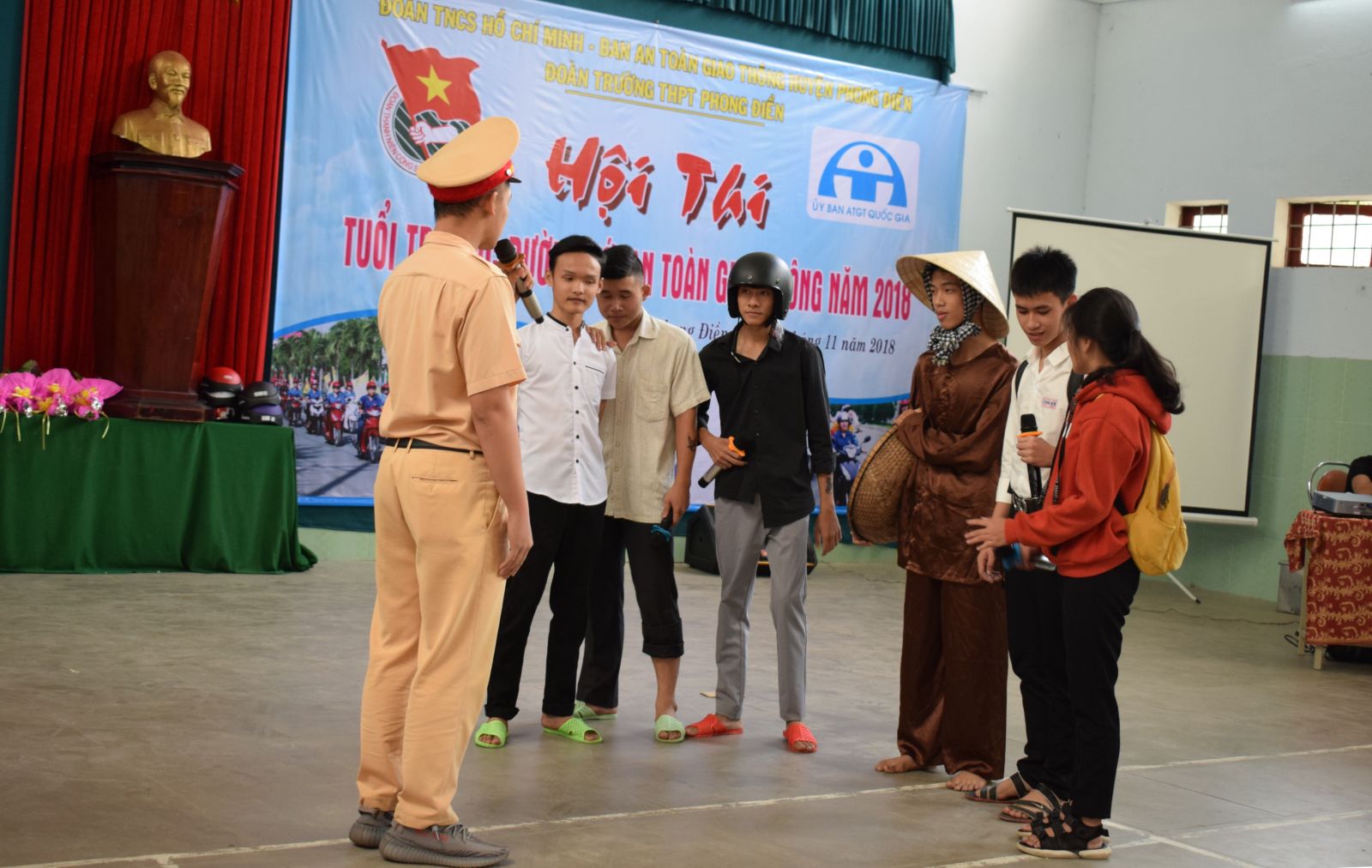 Tham gia hội thi có 7 đội đến từ các khối lớp của trường THPT Phong Điền, mỗi đội phải tham gia hai phần thi là tiểu phẩm về an toàn giao thông và phần thi hùng biện.