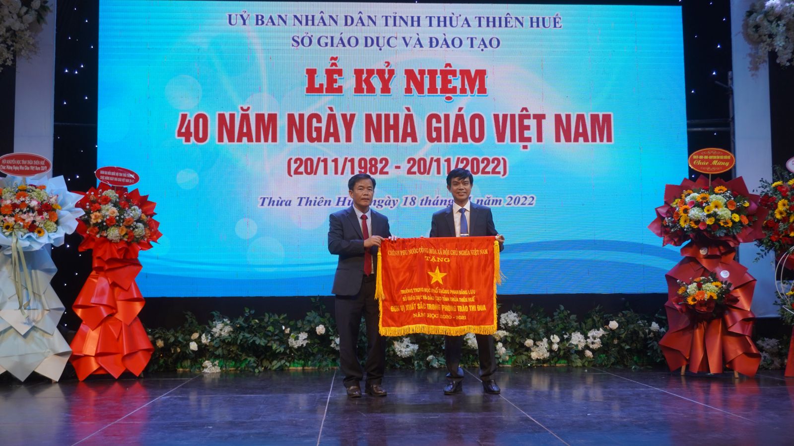 Dịp này, Trường THPT Phan Đăng Lưu vinh dự được nhận cờ thi đua của Thủ tướng Chính phủ dành cho đơn vị có thành tích xuất sắc trong phong trào thi đua năm học 2021 - 2022. UBND tỉnh cũng trao tặng bằng khen cho các tập thể, cá nhân có thành tích xuất sắc của ngành giáo dục.