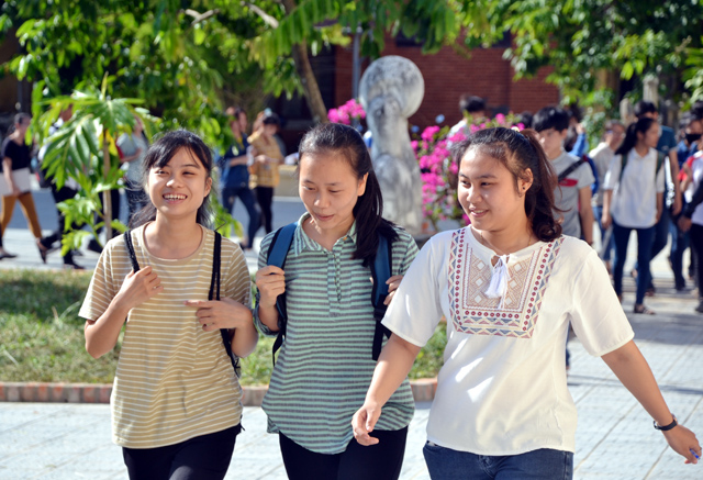 Các thí sinh thi vào Trường đại học Nghệ thuật Huế thỏa mái sau buổi làm thủ tục
