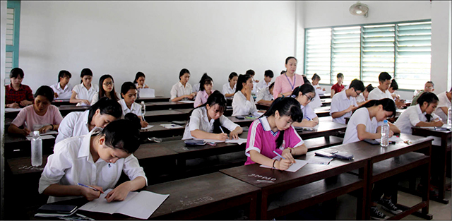 Trong phòng thi tại điểm Trường ĐH Kinh tế - ĐH Huế