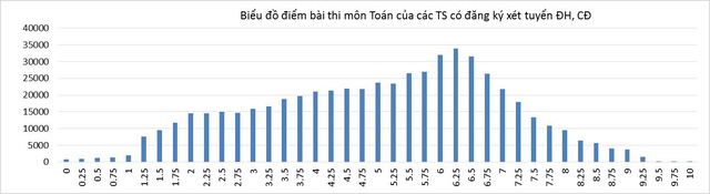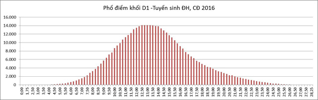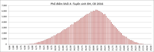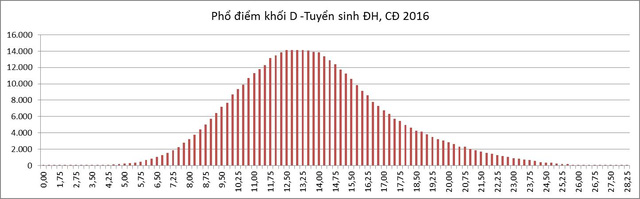Ngày 26/7, Bộ GD&ĐT đã công bố phổ điểm các môn thi và phổ điểm các khối thi truyền thống A, A1, B, C, D, D1 của thí sinh đăng ký xét tuyển vào ĐH, CD (thi tại 70 cụm thi do trường ĐH chủ trì) để các trường và thí sinh tham khảo trong đăng ký xét tuyển vào ĐH, CĐ sắp tới.