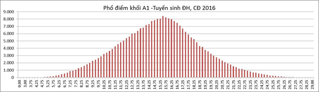 Kết quả cho thấy trừ các khối thi D, D1 có điểm trung bình dưới 15, khối C có điểm trung bình xấp xỉ 15, các khối thi còn lại đều có điểm trung bình trên 15. Điều này là do phổ điểm các môn tự nhiên như Toán, Lý, Hóa lệch về phía điểm cao còn phổ điểm của môn Tiếng Anh lệch về phía điểm thấp.