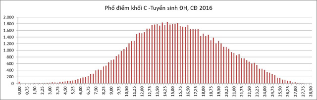 Các đường cong phổ điểm rất đều, không dốc tạo điều kiện thuận lợi cho các trường xác định điểm trúng tuyển phù hợp với chỉ tiêu của mình.
