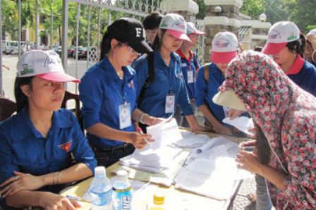 Tình nguyện viên thông tin về nhà trọ giá rẻ tại kỳ thi tuyển sinh đại học 2013