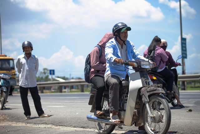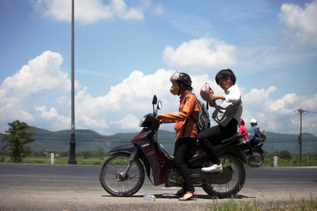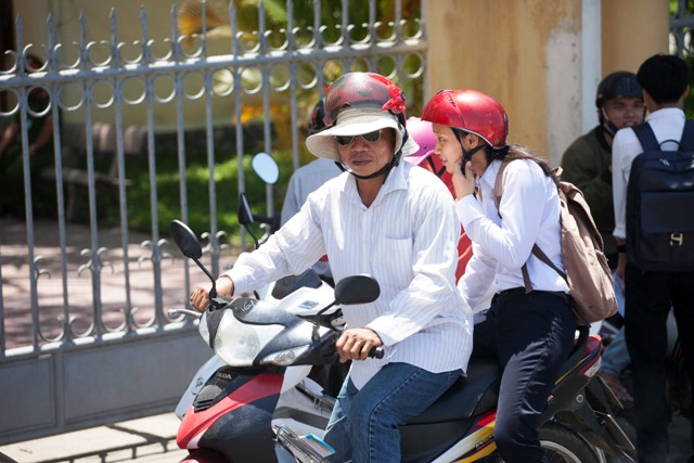 Hành trình của một người cha những ngày này đó là đưa con đi, chờ con thi và chở con về... Ảnh chụp trên Quốc lộ 1A đoạn đi qua thị xã Hương Trà sáng 23/6