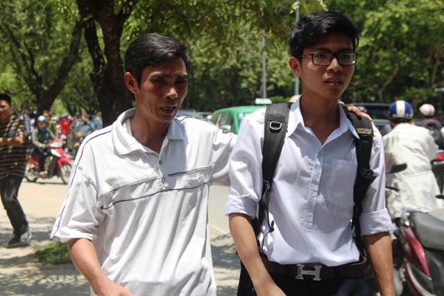Trong vô vàn hình ảnh ấy quen thuộc, gần gũi ấy chúng tôi “đọc” được cảm xúc qua từng ánh mắt của phụ huynh. Một ông bố lót dép ngồi ở gốc cây trong lúc chờ con, bà mẹ cầm cái quạt và chai nước mong “tiếp tế” cho con ngay sau buổi thi, những cái nắm tay, khoác vai thật chặt trên đường về…