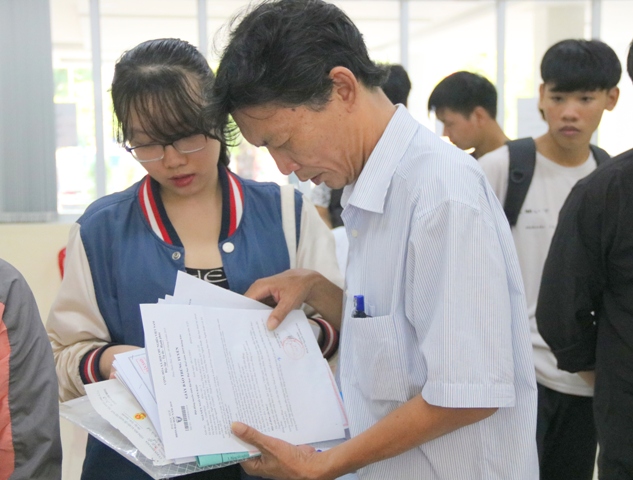 Thí sinh và phụ huynh chuẩn bị hồ sơ xác nhận nhập học vào ĐH Huế