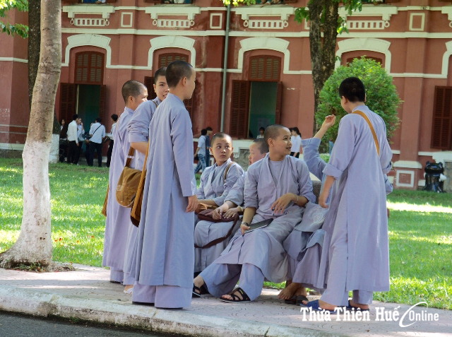 Các sư ni trước giờ thi (Ảnh: Hương Giang)